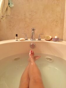 One practice that I use for self-care is super yummy and long Epsom Salt baths. After dinner, I absolutely love filling my tub with 4 cups of Epsom Salt (I’ll typically add 10 drops of essential oil to the salt) to soak. There are so many healing benefits and spiritual significance to pools of water, especially with salt, and for me, this is my time to give energy back to myself. By filling my own cup in this way, I can then give from the overflow. It would be impossible for me to show up for my partner, clients, family, and friends the way that I do if I didn’t take care of myself FIRST.