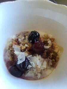 I love my breakfast! Every morning without fail, Hot Lemon Water, Juice Plus (@wholefoods ), and Clarity (wild honey, phytoplankton, mushroom blend) =energy pop! My morning routine starts me in the right direction with the energy I need throughout the day, and then to fall asleep easily at night! And for breakfast buckwheat cereal with hulled hemp seeds(great protein source) walnuts, pumpkin seeds, coconut flakes, coconut milk and cherries sauteed in coconut oil. #DayInTheHCILife #sparkthechange