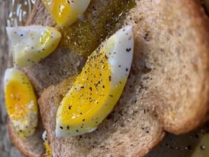 After exercise, I meditate, do some daily reading, and plan my day while in the shower. Breakfast is a must, and I make sure that a high-quality protein is the star of the show. Usually eggs and whole wheat toast, but I’m not against a leftover chicken breast or Caprese salad!
