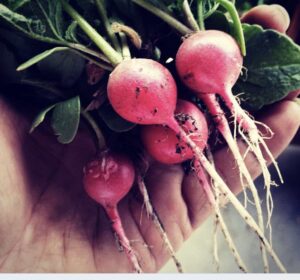 By the time lunch rolls around, I’m knee-deep in projects, teaching, or grabbing a free moment to work on my book (Cultivating Joy: Find Your Inner Peace Through Mantras and Mindset). I often forget to eat, so I try to stay mindful and aware of the time so I’m not munching down low-energy snacks and carbs when I’m hungry later. On the road, I reach for high-protein, high-energy fruit, veggies, and lean meat—usually in a salad and with lots of water. At home, I crave what I grow in the backyard garden.